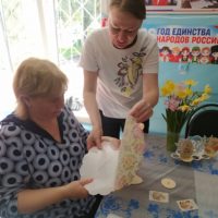 В преддверии православного праздника Светлой Пасхи в Доме культуры посёлка Фазанный прошёл мастер-класс по декупажу на деревянных заготовках в форме яиц.